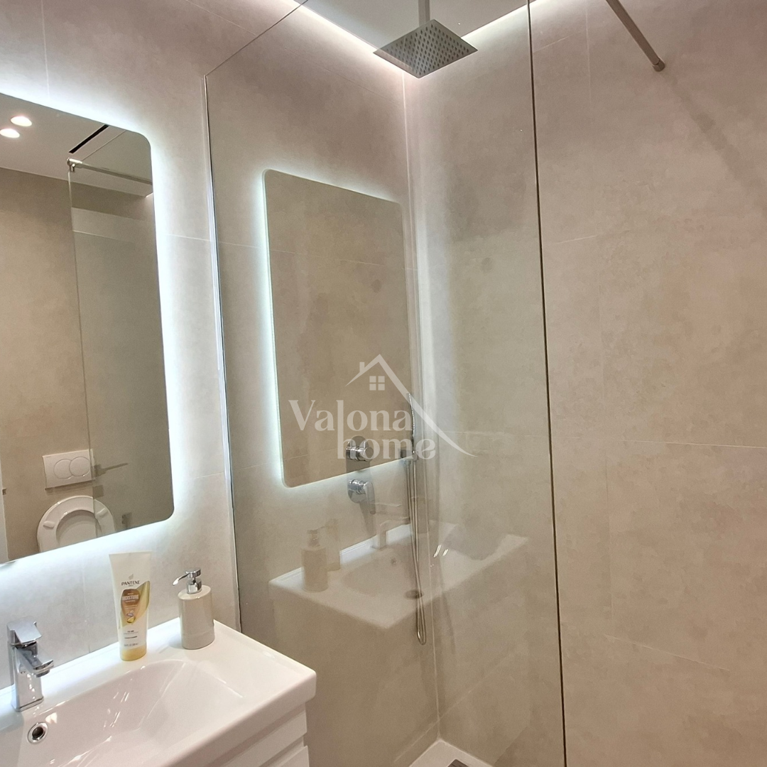 ✅️sallon i bollshëm me kuzhinë dy dhoma gjumi, dy tualete dhe ballkon me pamje panoramike nga deti